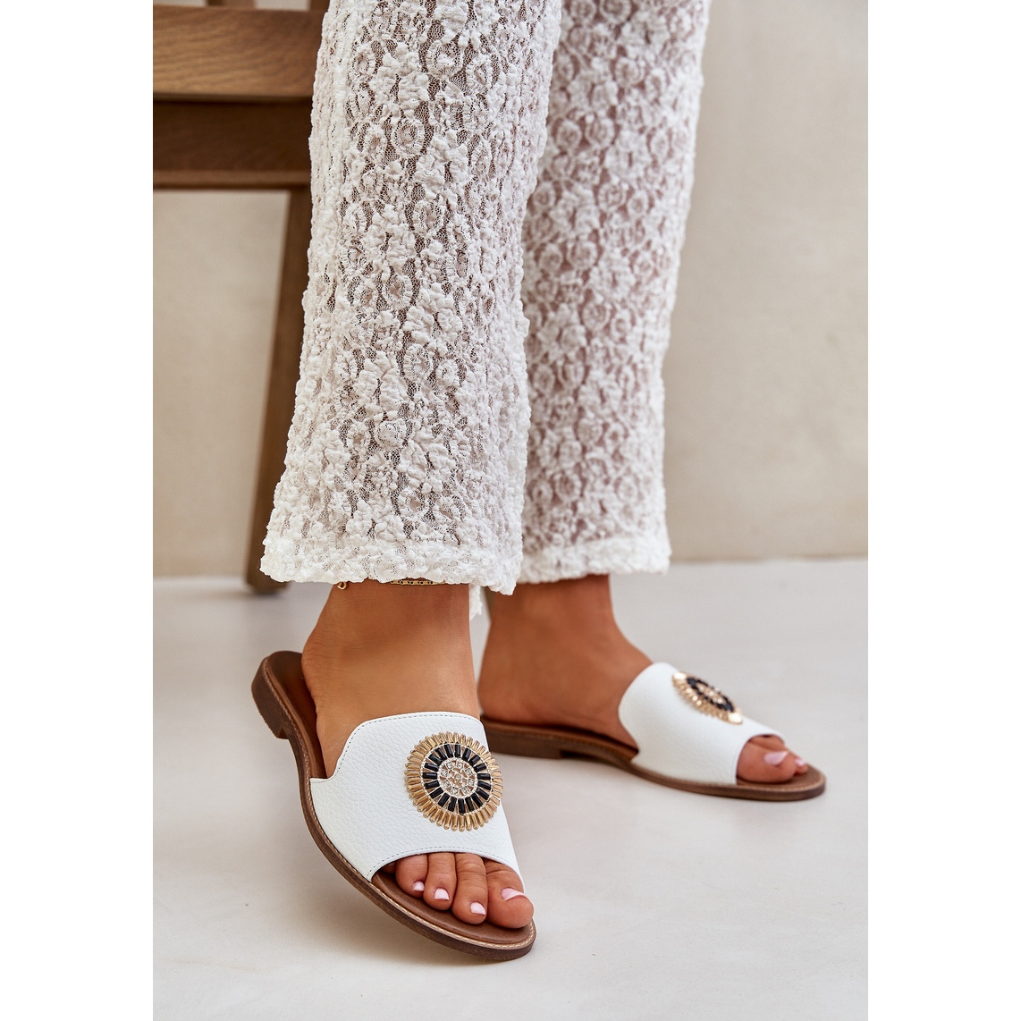 Lewski Shoes Lewski Shoes Chinelos de couro com decoração de Lewski 3047/O de peças planas branco