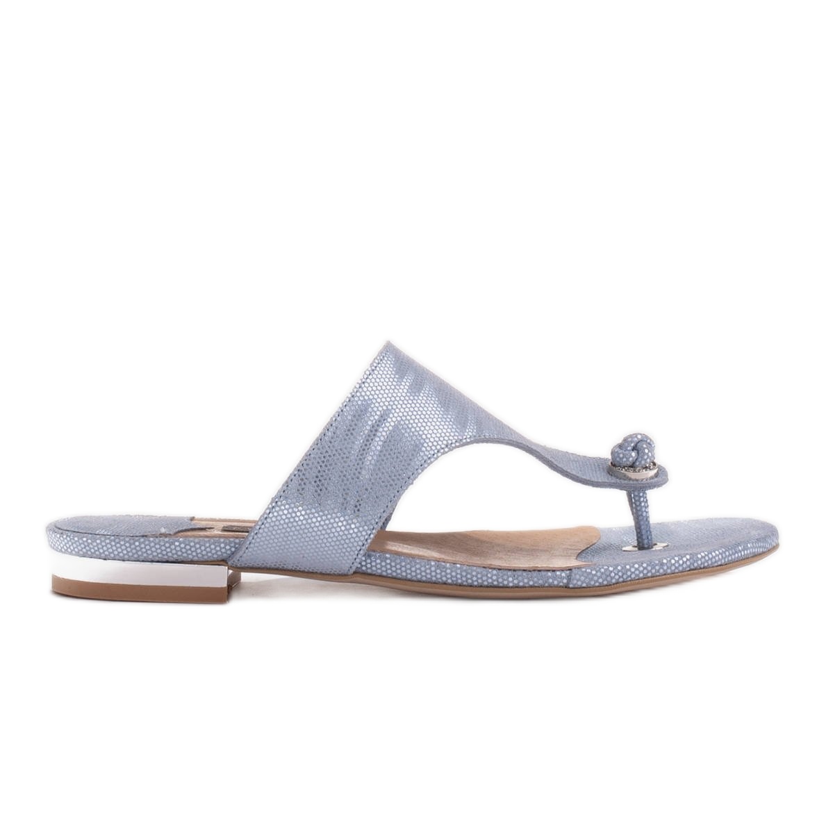 Marco Shoes Marco Shoes Chinelos de couro com salto metálico azul