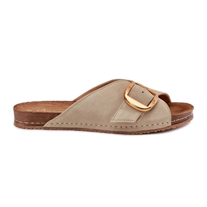 Maciejka Chinelos de couro com uma pinça dourada maciejka 07000-22 pistache verde
