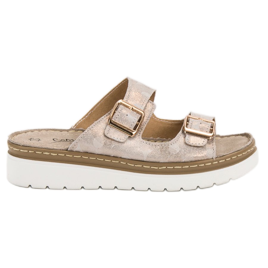 ** Chinelos de couro confortáveis Filippo - marrom amarelo **