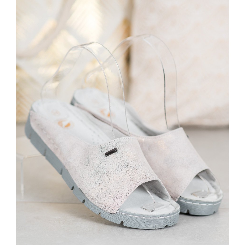 Detalhes: Goodin Chinelos de couro confortáveis cinza