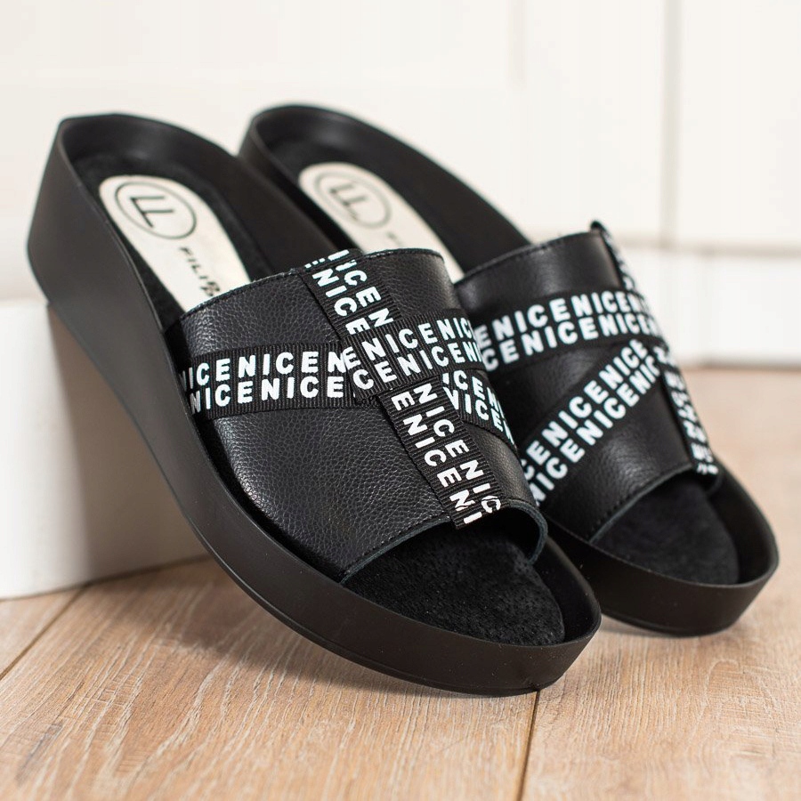 Os chinelos de couro Filippo Fashion na cor preta são a escolha perfeita para mulheres que procuram conforto e estilo no dia a dia. Confeccionados em couro natural de alta qualidade, tanto a parte externa quanto a interna dos chinelos garantem conforto e durabilidade. Graças ao salto aberto e ao design slip-on, estes chinelos adaptam-se perfeitamente a um estilo casual, perfeito para a primavera e o verão.