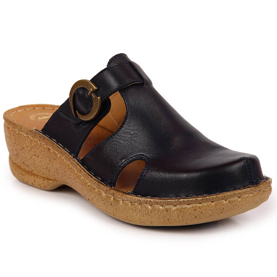 Detalhes: Chinelos de couro em uma cunha azul Łukbut 666 azul marinho
