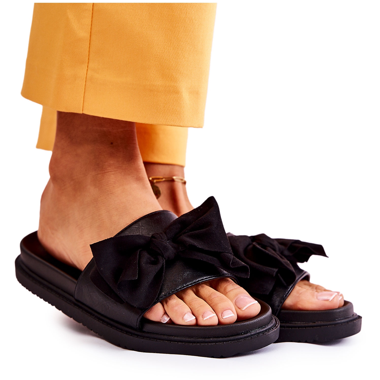 PJ1 PJ1 Chinelos de couro feminino clássico com laço preto Dessy