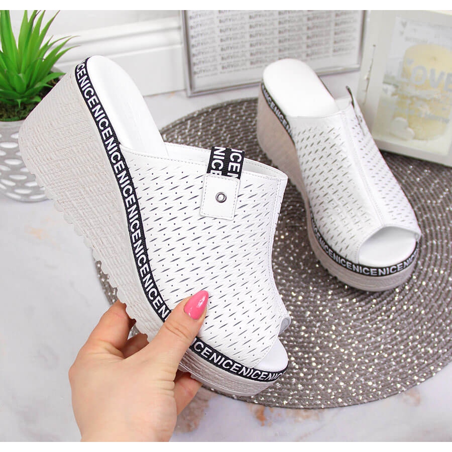 Detalhes: Chinelos de couro feminino em uma cunha Artiker branco
