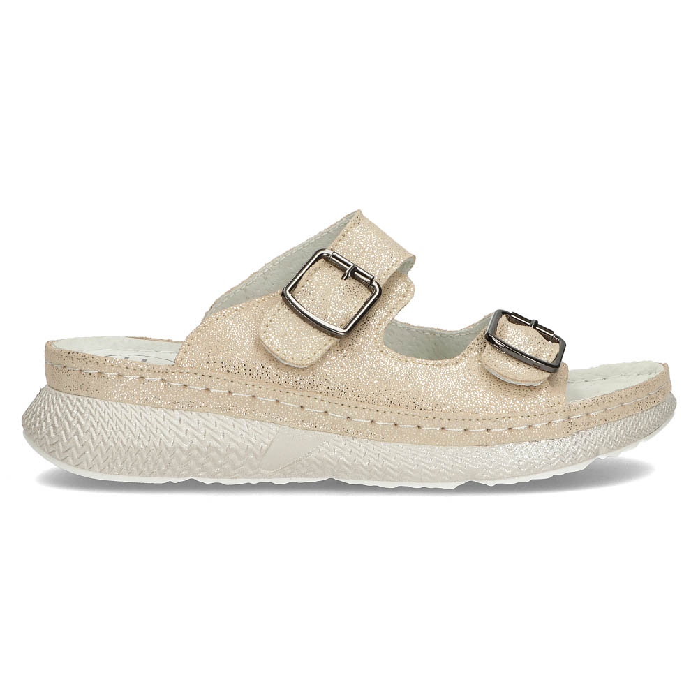 Os chinelos Filippo caracterizam-se pela biqueira redonda e sola em material sintético, o que garante leveza e flexibilidade. A altura do salto de 2 cm e a altura da plataforma de 1,5 cm tornam este modelo não só moderno, mas também confortável para os pés. Graças à largura G, os chinelos adaptam-se perfeitamente ao formato da perna, oferecendo conforto a cada passo.