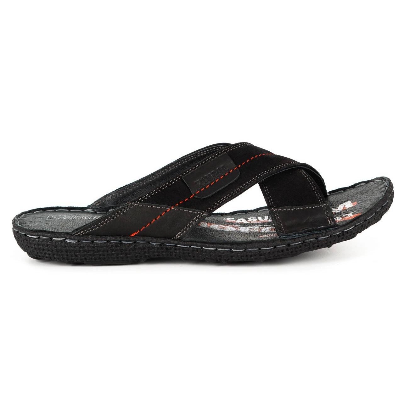 Detalhes: Kampol Chinelos de couro masculino 200/3 nobuck preto
