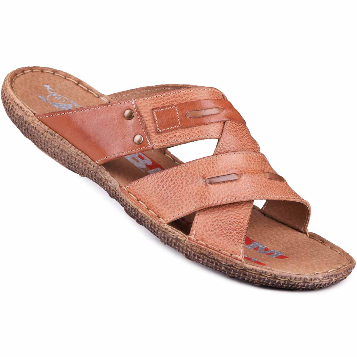 Kampol Kampol Chinelos de couro masculino 201 / C3 marrom castanho