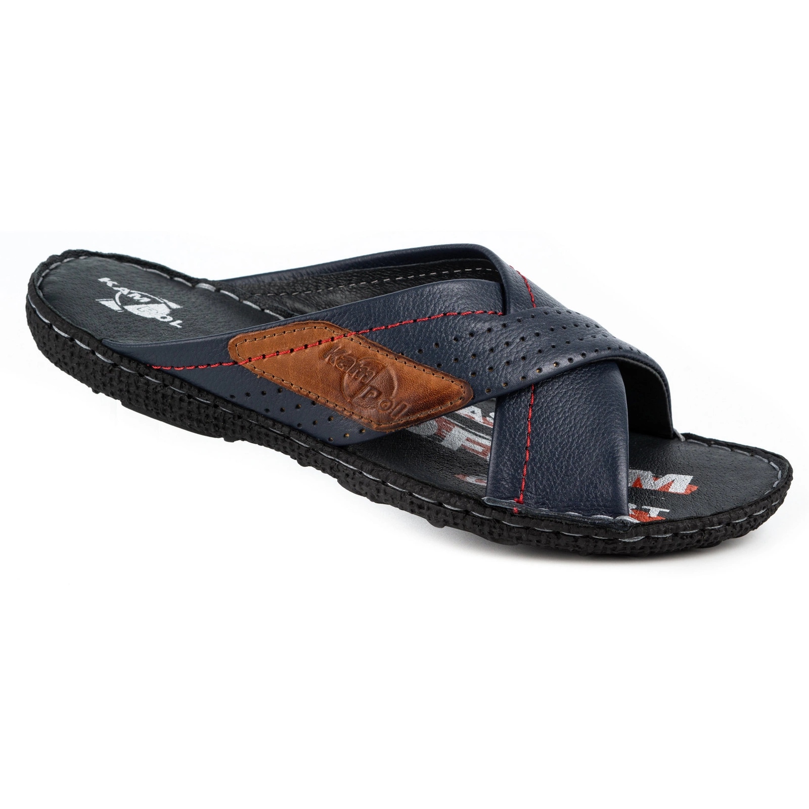 Você está procurando os chinelos de verão perfeitos? Os chinelos de couro masculinos 216kam do fabricante Kampol são uma ótima escolha! Feito de couro natural de alta qualidade, esses chinelos elegantes com detalhes em marrom combinam estilo e conforto, tornando -os uma adição ideal ao seu guarda -roupa de verão.