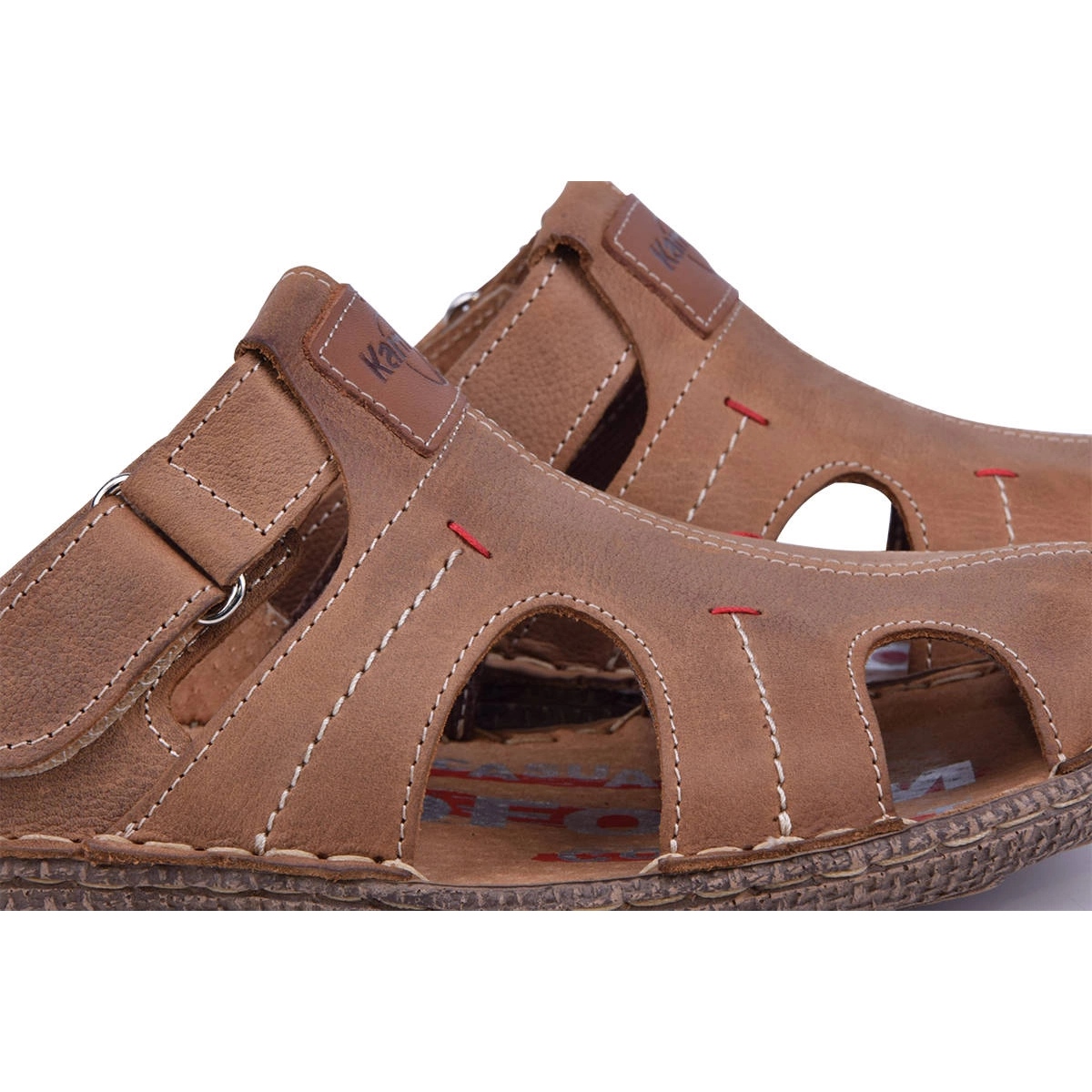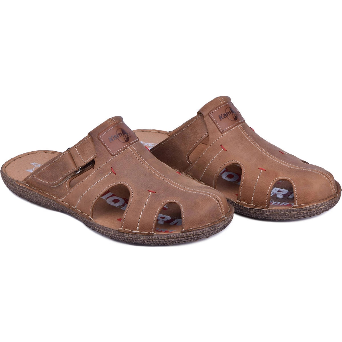 Detalhes: Kampol Chinelos de couro masculino 217 / 22KAM marrom castanho