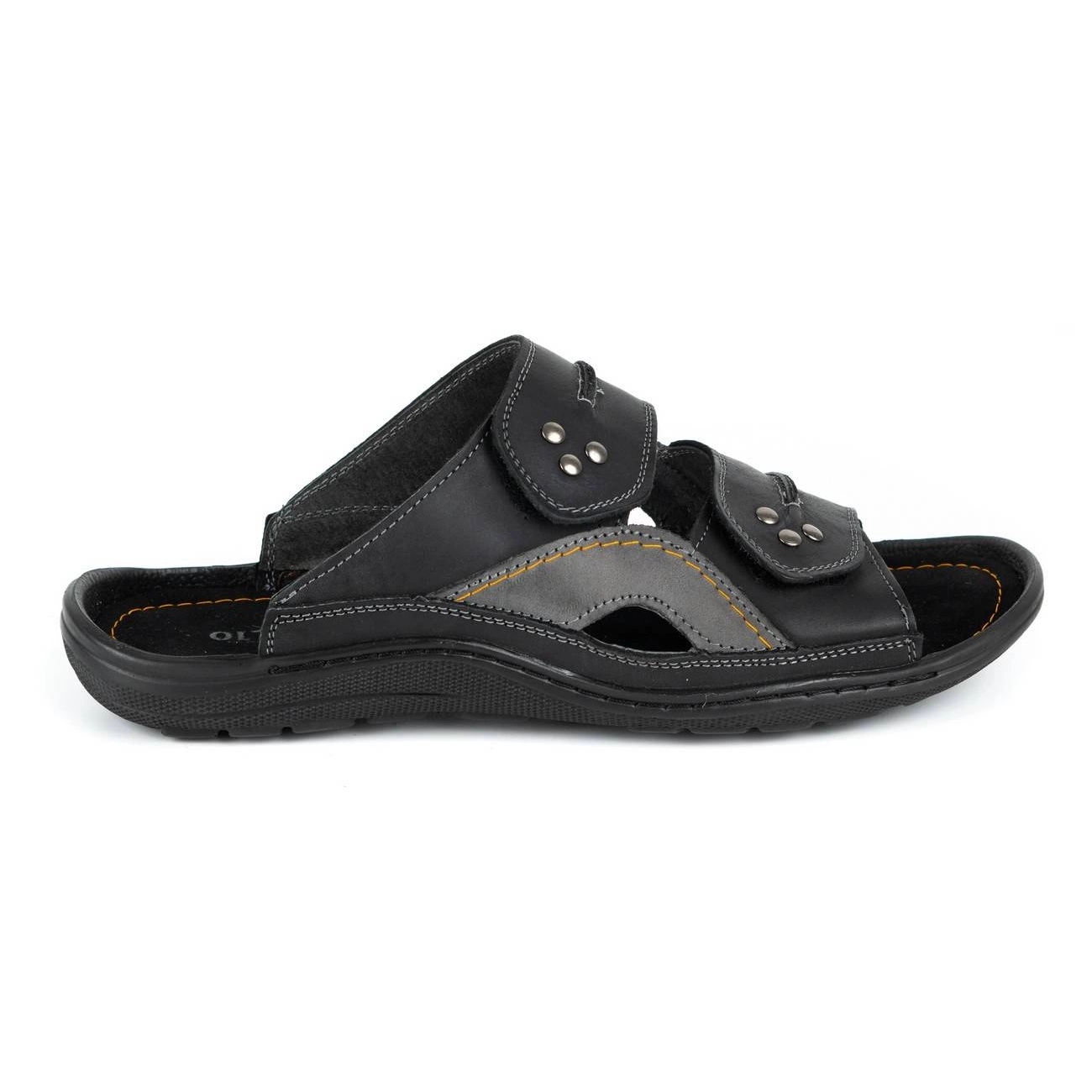 Detalhes: Olivier Chinelos de couro masculino 335GT preto