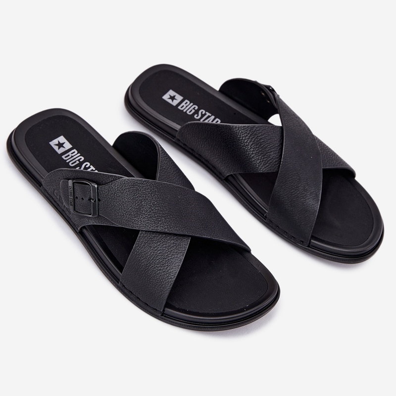 Big Star Big Star Chinelos de couro masculino com grande estrela rr174076 fivela preta preto