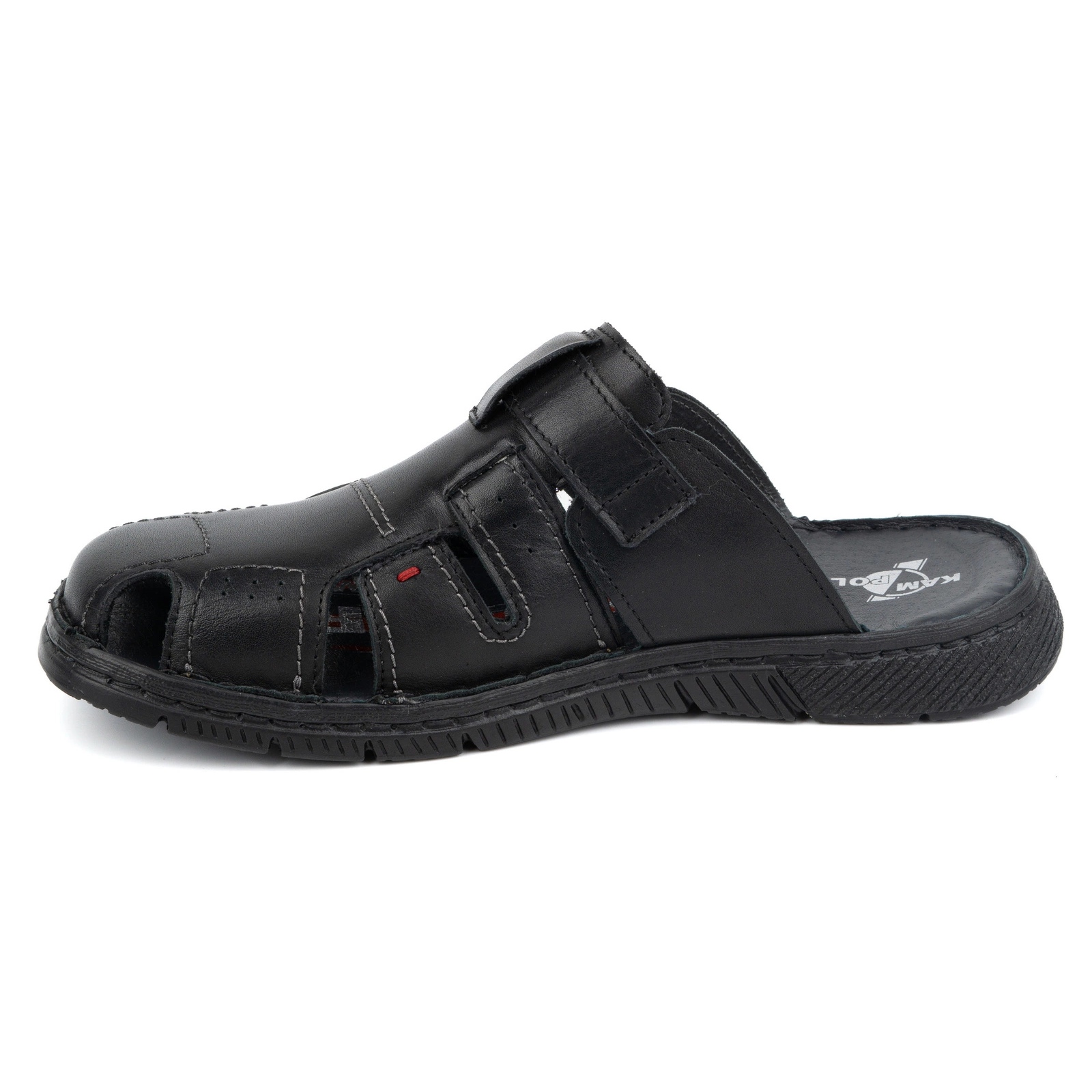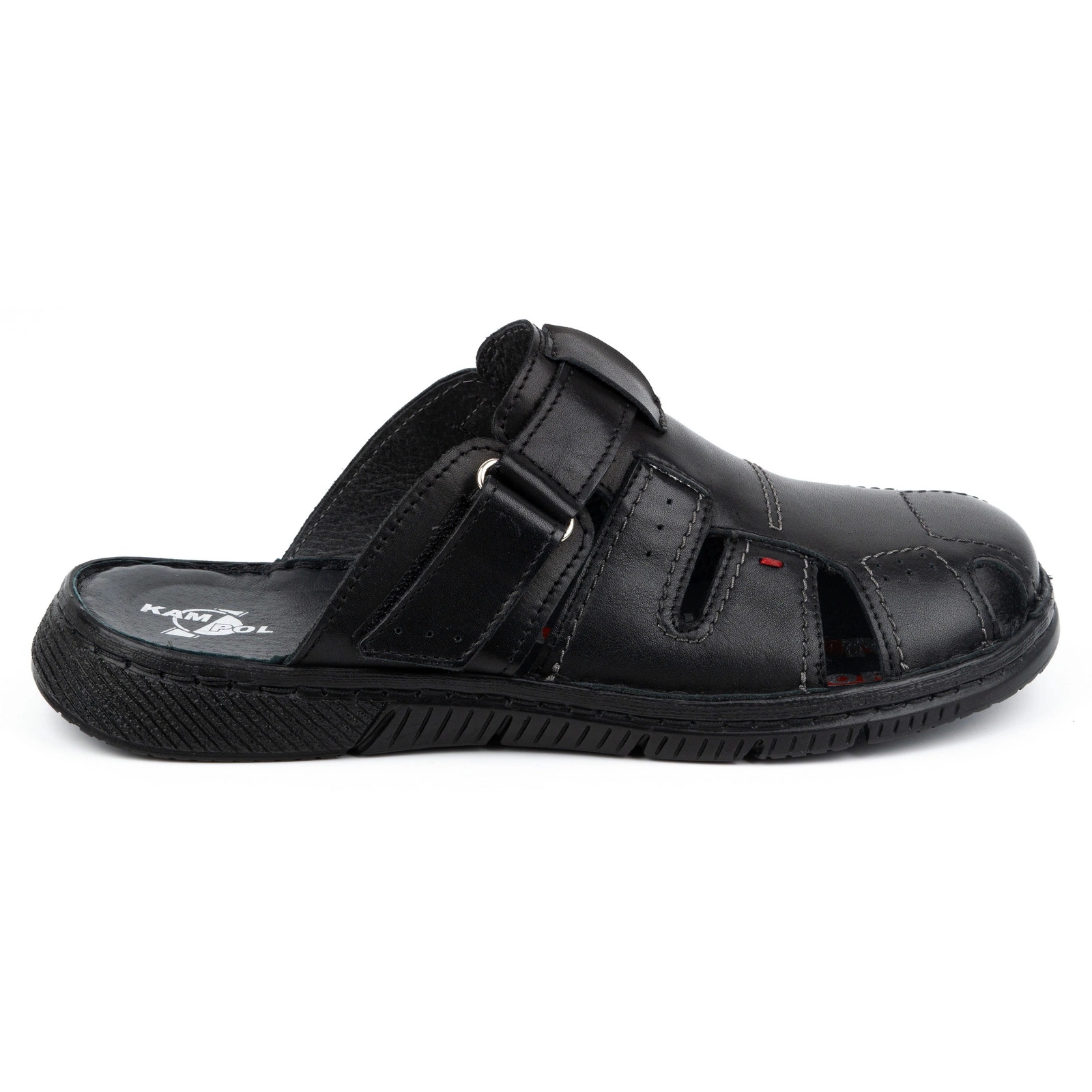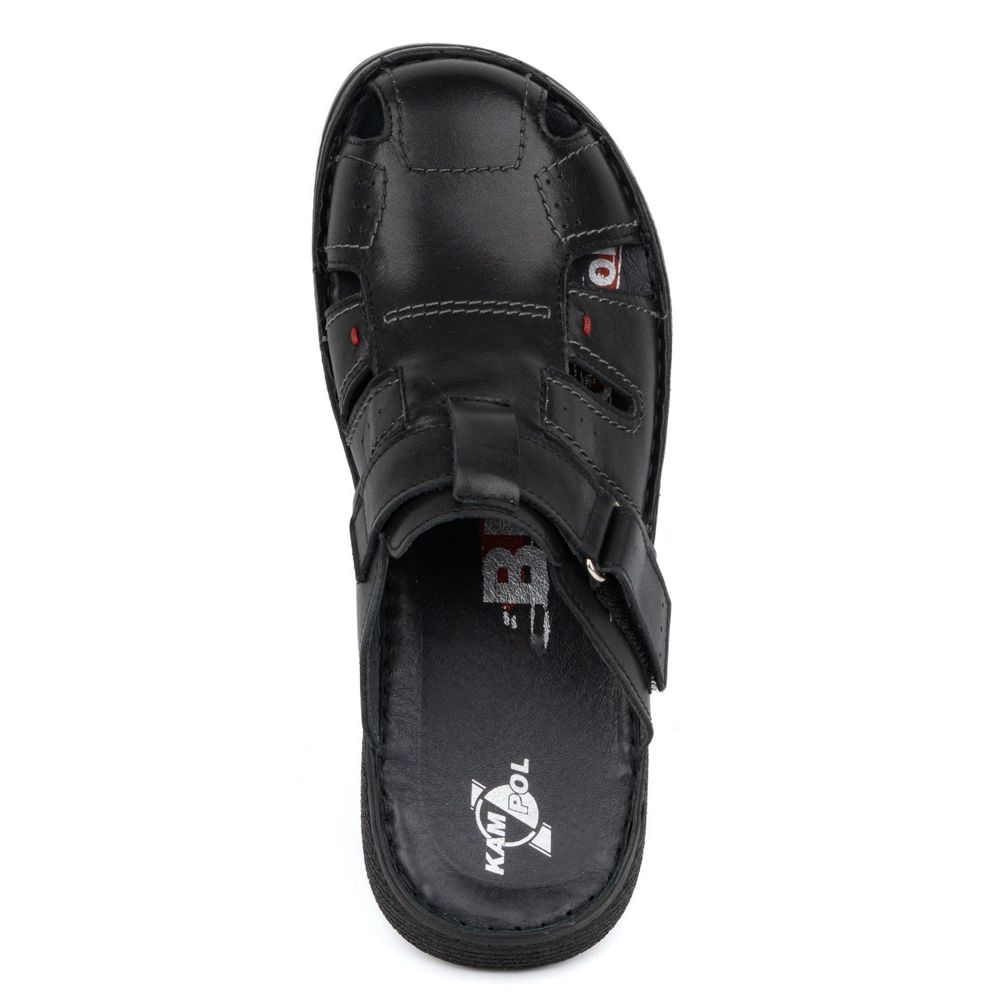 Detalhes: Chinelos de couro masculino KAMPOL Polskie stogie 221KAM preto