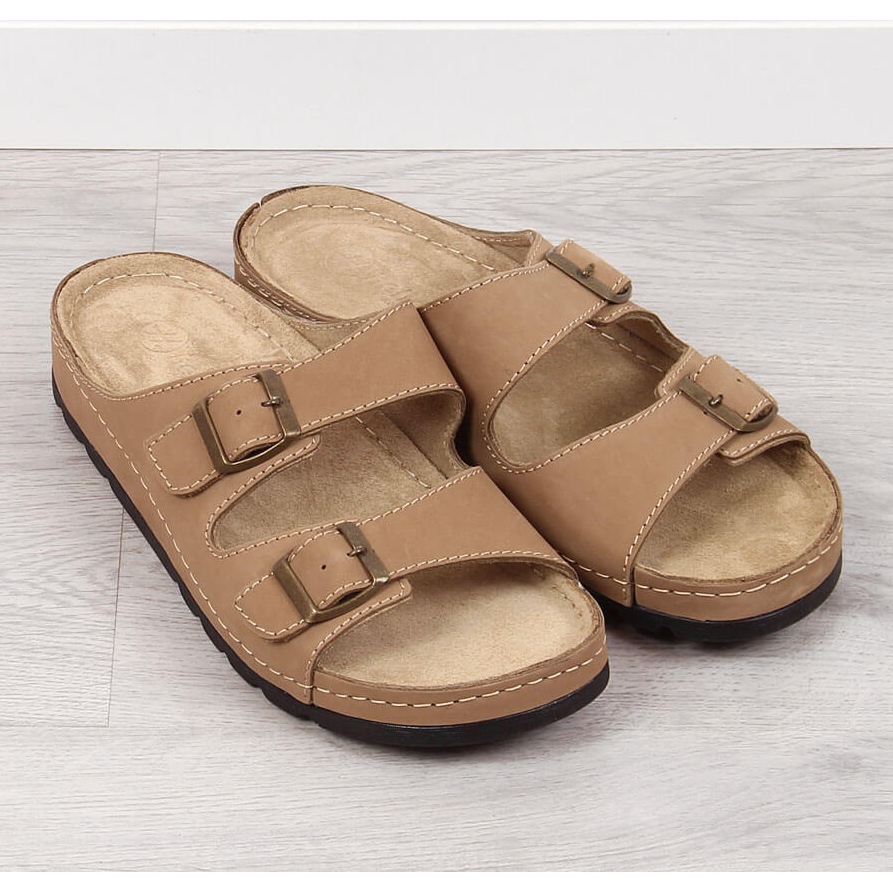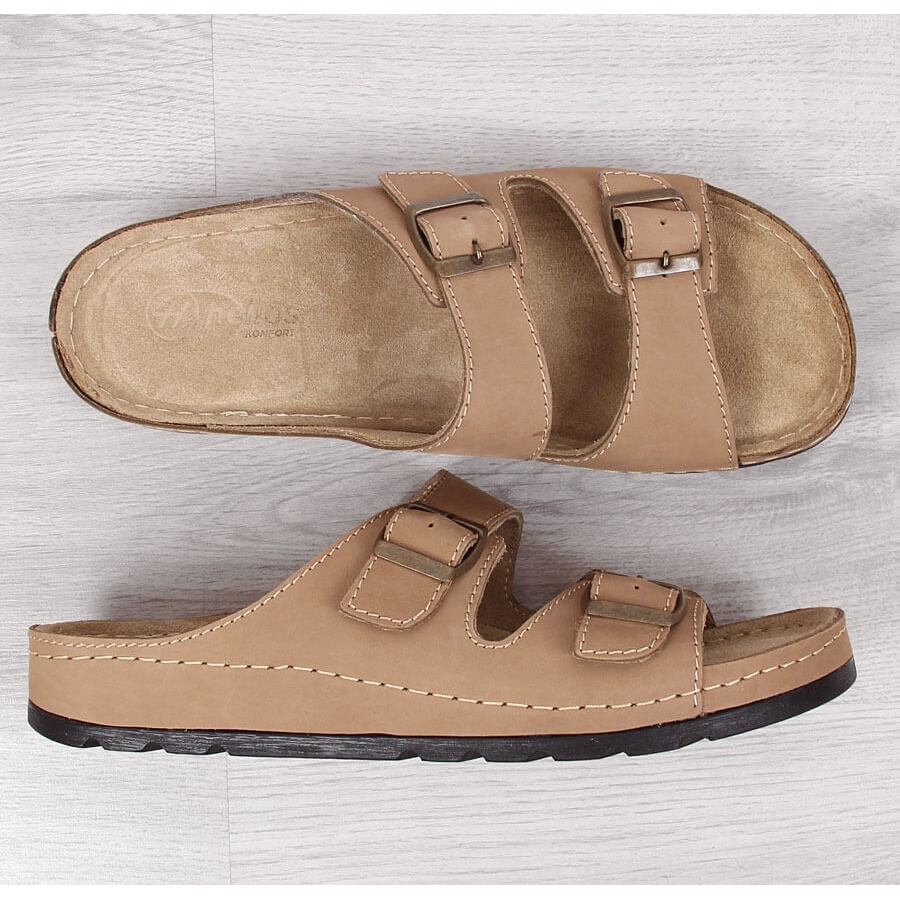 Detalhes: Chinelos de couro masculinos confortáveis bege Helios 813