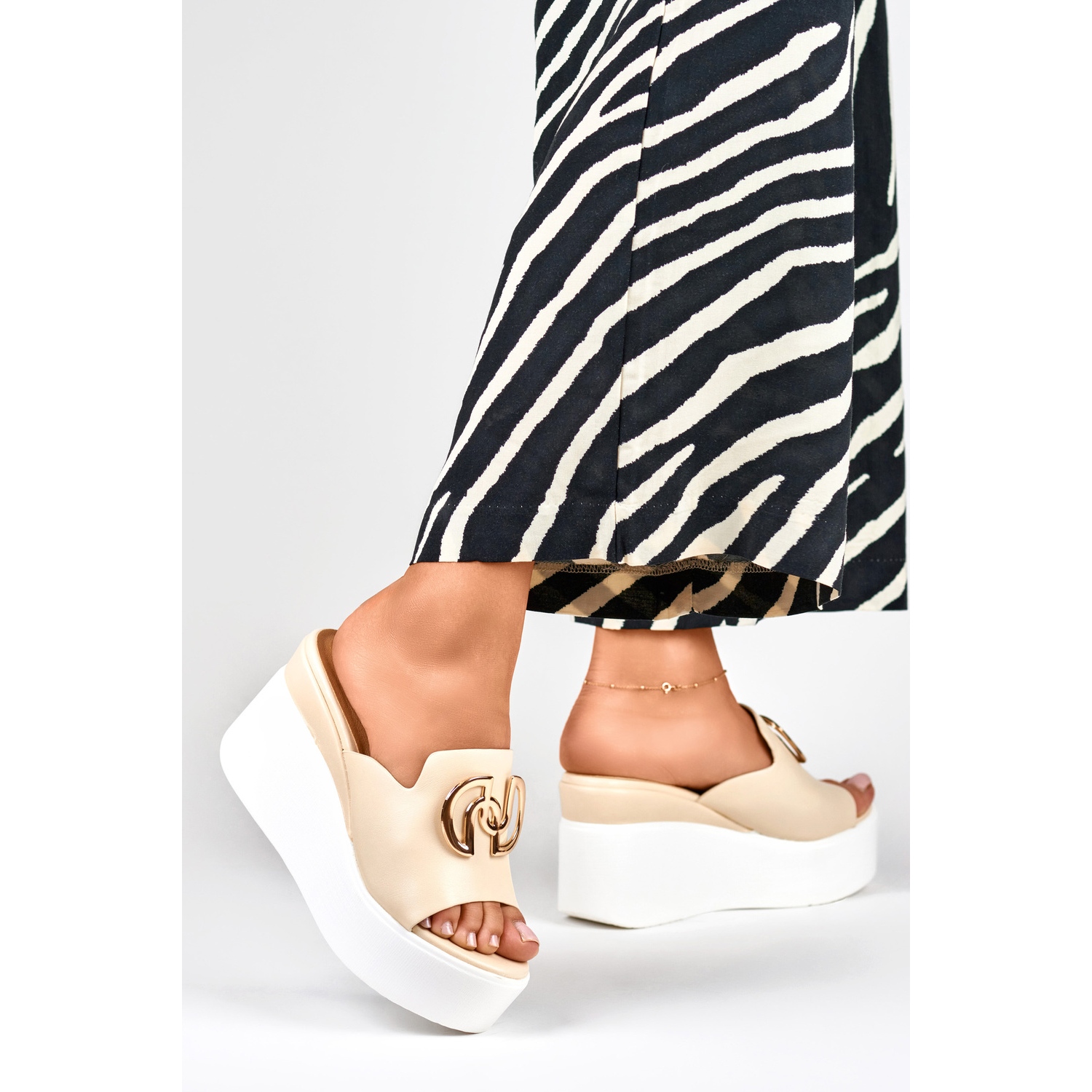 Detalhes: Chinelos de cunha elegantes bege para mulher