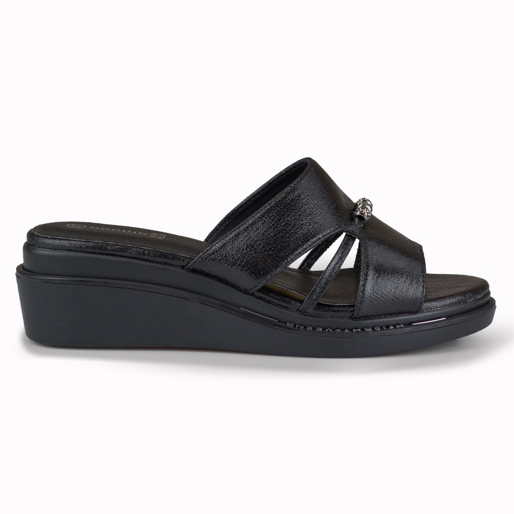 Detalhes: Chinelos de cunha femininos elegantes e confortáveis preto