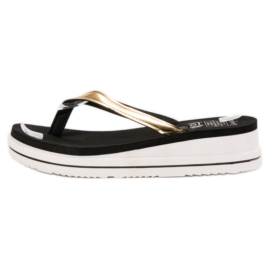 Descubra os sapatos de verão perfeitos - chinelos pretos da SHELOVET! Estes elegantes chinelos femininos combinam conforto e estilo, tornando-os uma escolha perfeita tanto para a praia como para o dia a dia. Com 4,5 cm de altura, a cunha proporciona estabilidade e conforto adequados ao caminhar, e a tira dourada de apoio ao pé confere charme sem esforço.