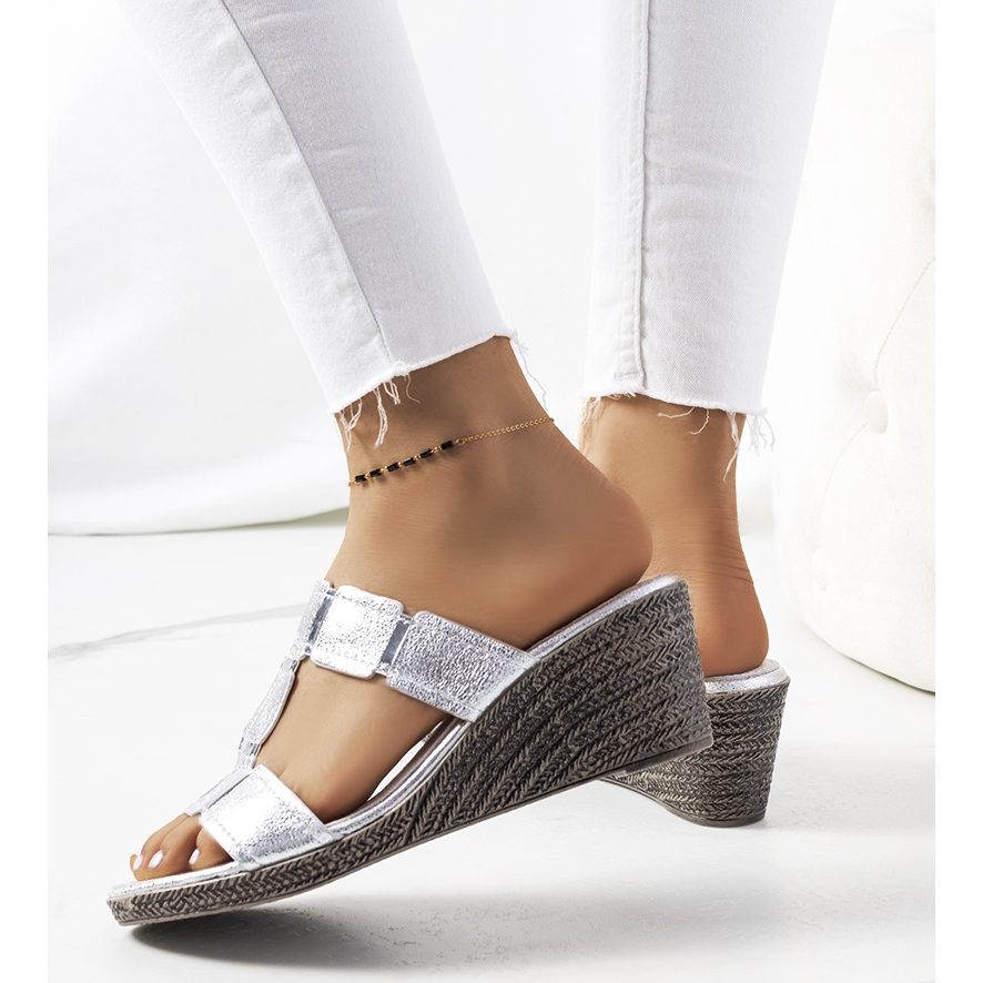 Detalhes: Chinelos de cunha Silver Rosser prata