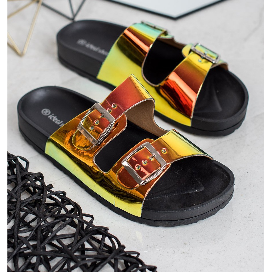 Ideal Shoes Ideal Shoes Chinelos de fivela holo amarelo