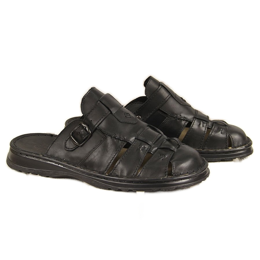 Detalhes: Chinelos de homem de couro preto confortáveis Łukbut 962