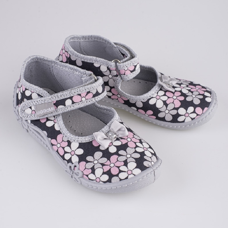 Chinelos de meninas Viggami Zosia - cinza com flores