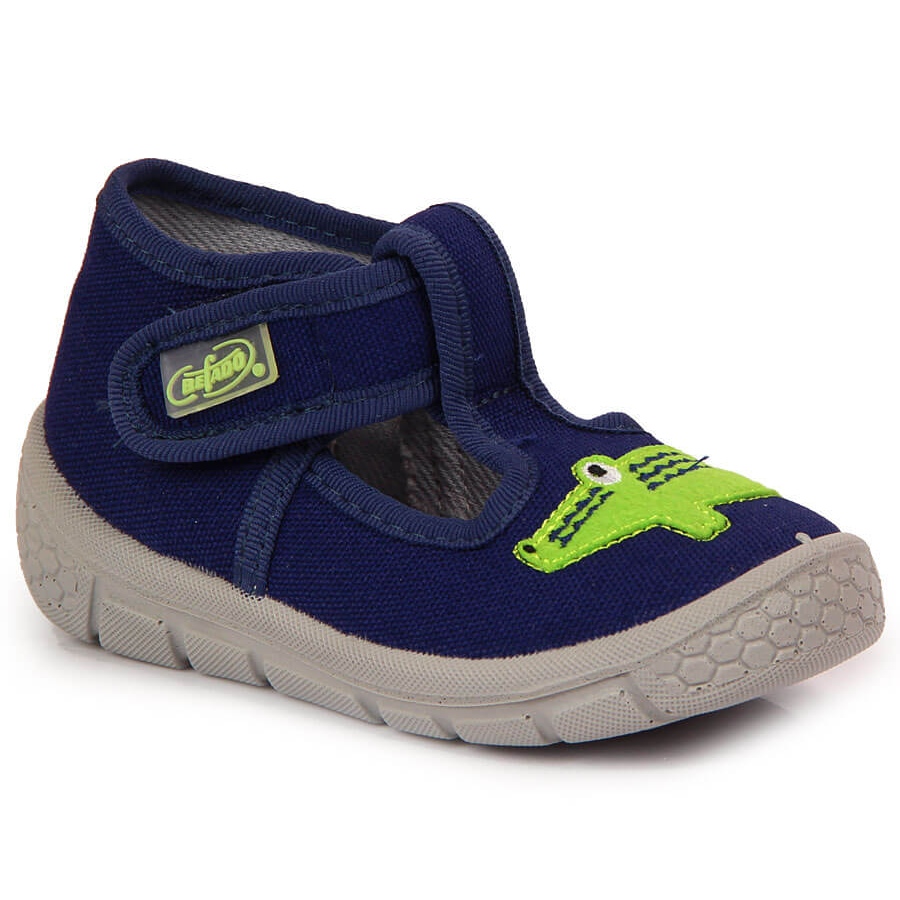 Detalhes: Chinelos de menino com velcro com jacaré azul marinho Befado azul-marinho