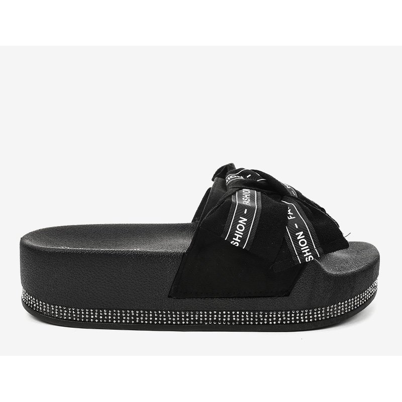 Estes são os chinelos pretos da moda casual 218-207 - a escolha perfeita para mulheres que valorizam estilo e conforto. Os chinelos altos são confeccionados em couro camurça elegante, o que lhes confere um caráter único. A plataforma sintética de 5 cm de altura garante conforto de uso e sua parte inferior é decorada com sutis zircões que conferem elegância ao conjunto.