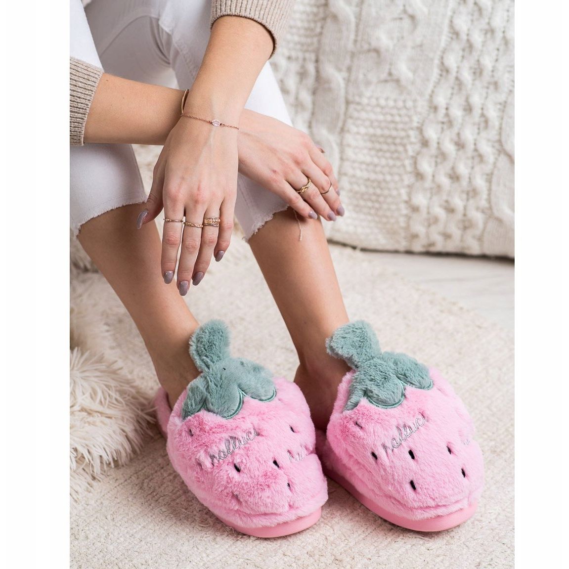 Os chinelos foram cuidadosamente desenhados para proporcionar o máximo conforto. Feitos de materiais têxteis de alta qualidade, não são apenas duráveis, mas também agradáveis ao toque. No interior dos chinelos há pelo macio que envolve os pés, proporcionando sensação de calor nos dias mais frios.