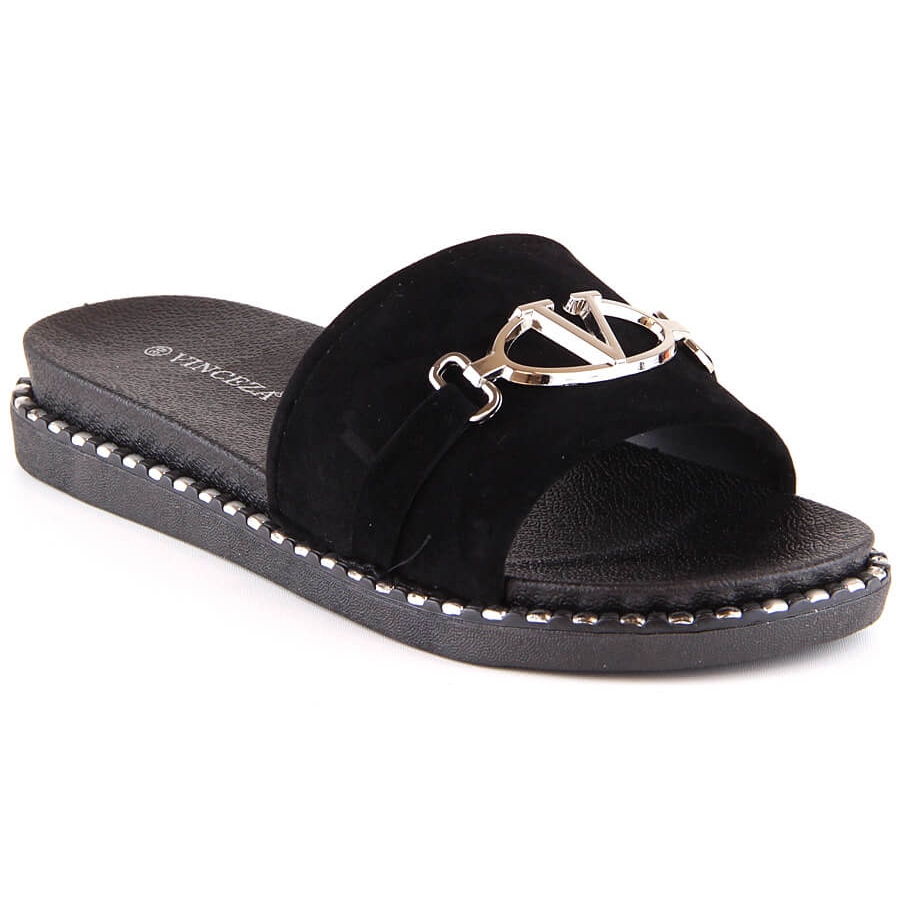 Vinceza Chinelos de mulher em camurça com decoração preta Vinceza 30183 preto