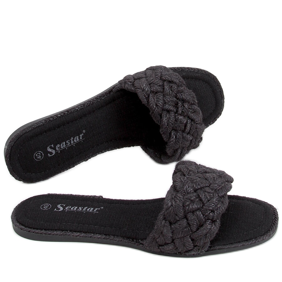 Descubra o estilo do verão com os chinelos femininos Erika Black! Estes elegantes chinelos com sola plana são a escolha perfeita para os dias quentes. O acabamento preto e liso faz com que combinem com muitos estilos de verão, e o cinto de linho trançado adiciona um caráter original.