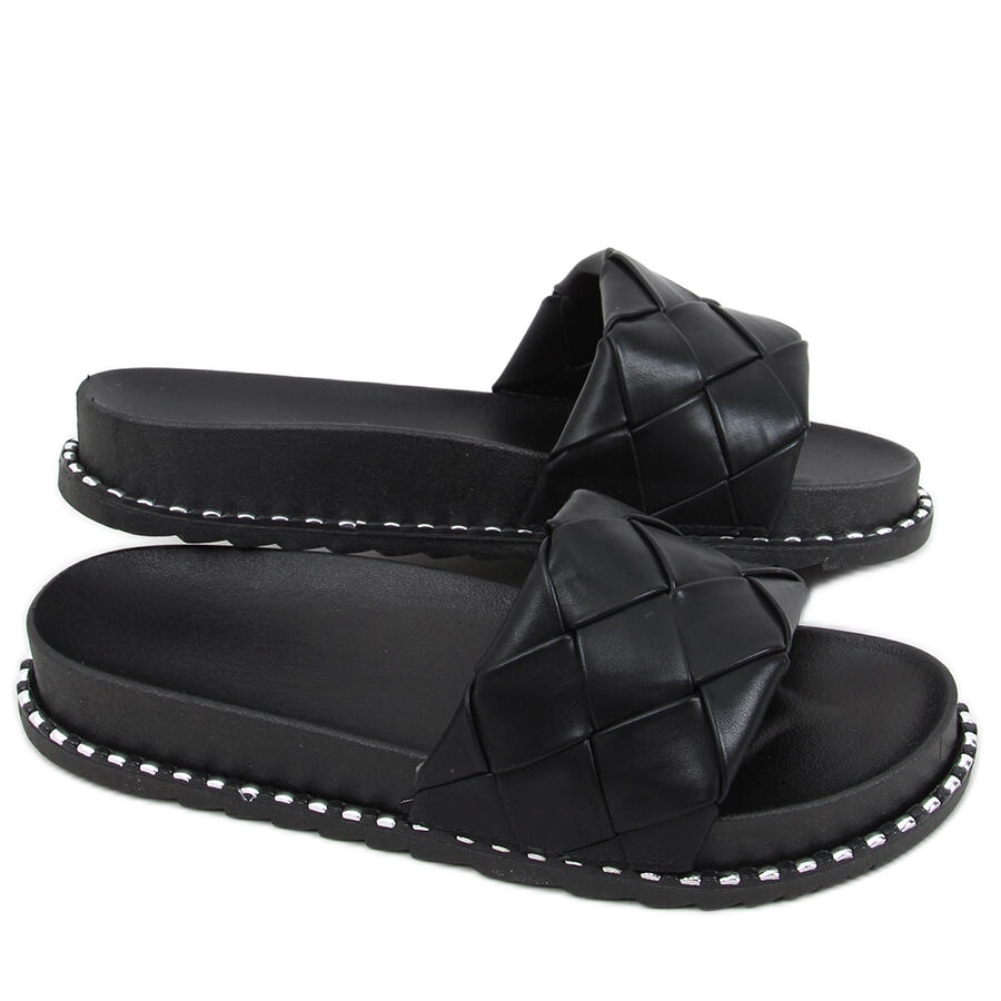 Os chinelos femininos Sunny Black são a escolha perfeita para mulheres que desejam aliar o conforto às últimas tendências. Estes elegantes chinelos pretos são confeccionados em couro ecológico de alta qualidade, o que os torna ecologicamente corretos. A tira larga trançada confere-lhes um carácter único, e a elegante sola alta, decorada com tachas, torna-os num verdadeiro sucesso da estação.