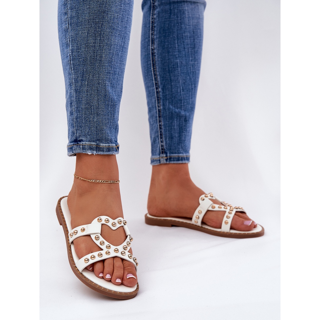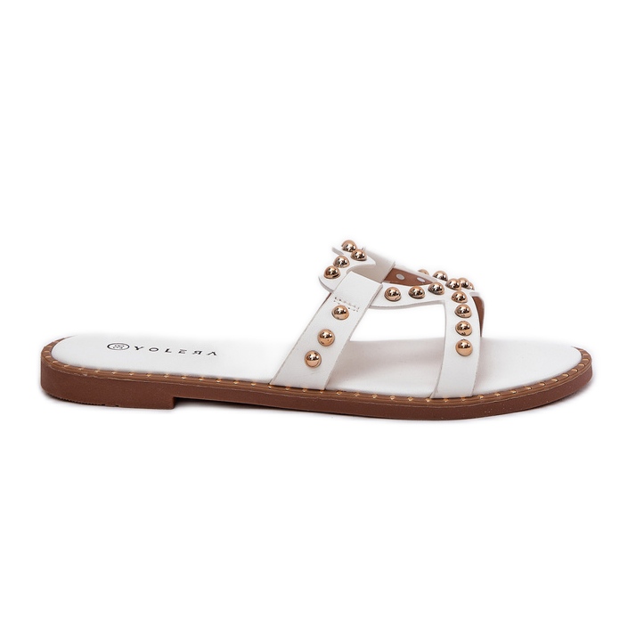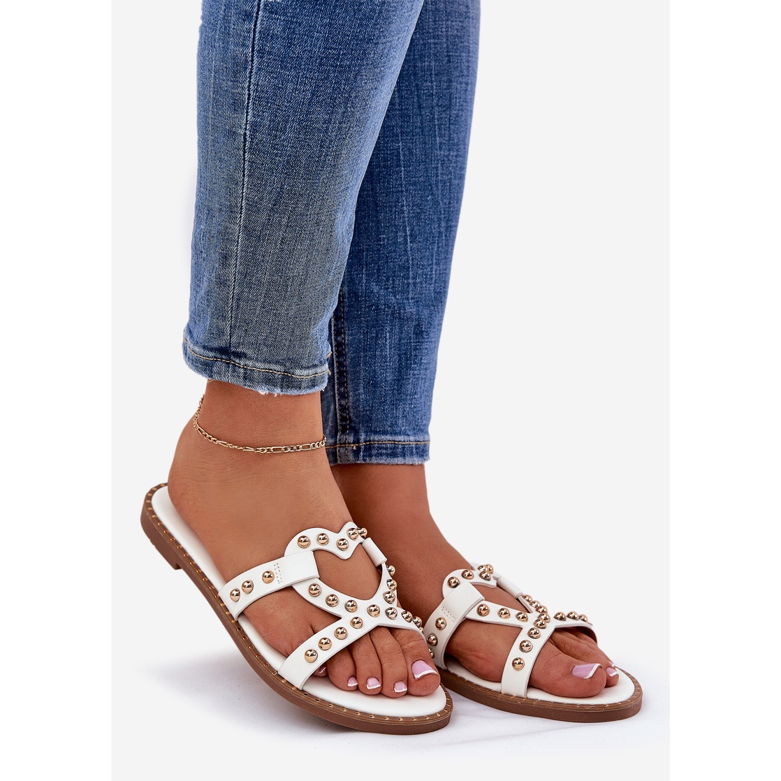 Inna marka Chinelos de mulheres brancas planas decoradas branco
