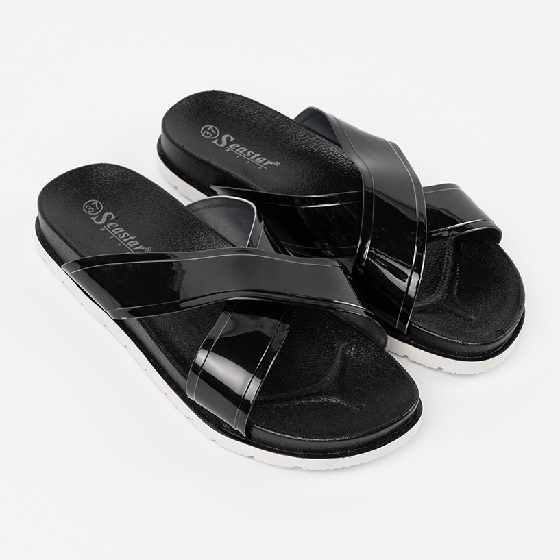 Seastar Seastar Chinelos de mulheres negras com listras envernizadas preto