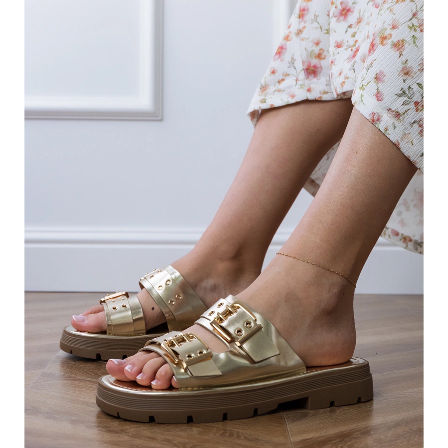 Inna marka Chinelos de ouro dourado com grampos em listras