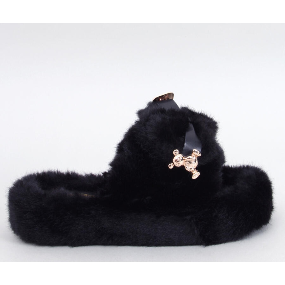 ** Flippers de pele com um arco e ursinho de pelúcia Burano preto - Inello **