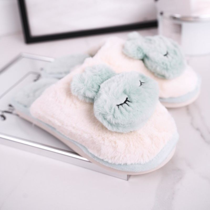 Detalhes: Chinelos de pele feminina coelho verde claro rosa