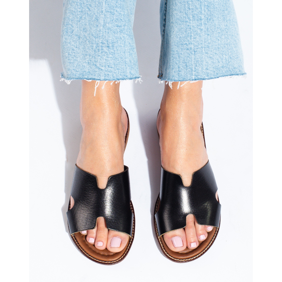 Detalhes: W. Potocki Chinelos de pele pretos de mulher Potocki