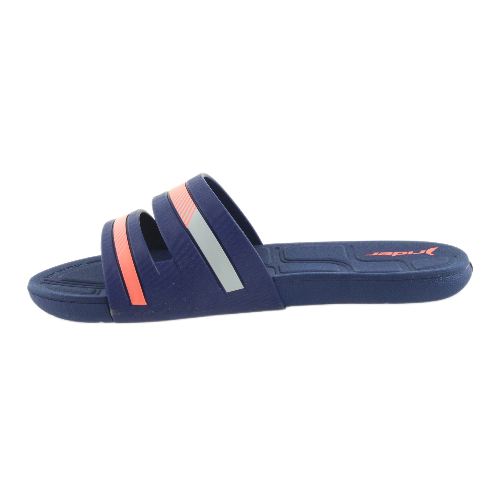 Apresentamos os chinelos de piscina femininos Rider 82504 na moda azul marinho e salmão, que certamente se tornarão um elemento favorito do seu guarda-roupa de verão. Estes chinelos únicos combinam conforto, funcionalidade e design moderno, o que os torna perfeitos para os passeios do dia a dia e para o lazer na piscina ou na praia.
