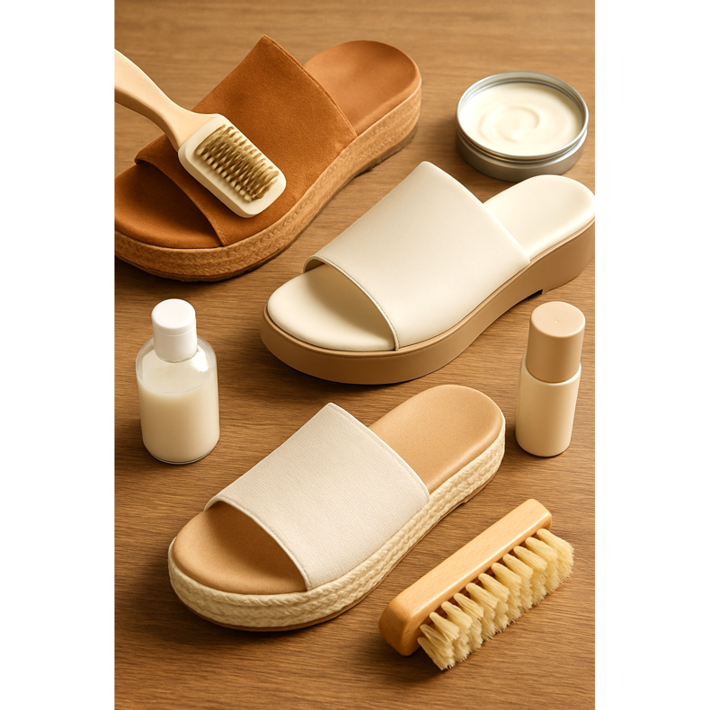 Os chinelos de plataforma requerem cuidados adequados para durar muitas temporadas. O cuidado deles depende principalmente do material de que são feitos.