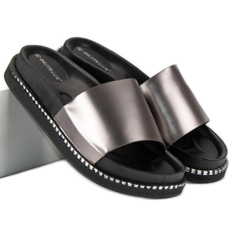 Descubra conforto e estilo com chinelos femininos prateados da Bestelle. Estes chinelos elegantes e casuais são a escolha perfeita para o uso diário, perfeitos tanto para o estilo urbano como para relaxar em casa.