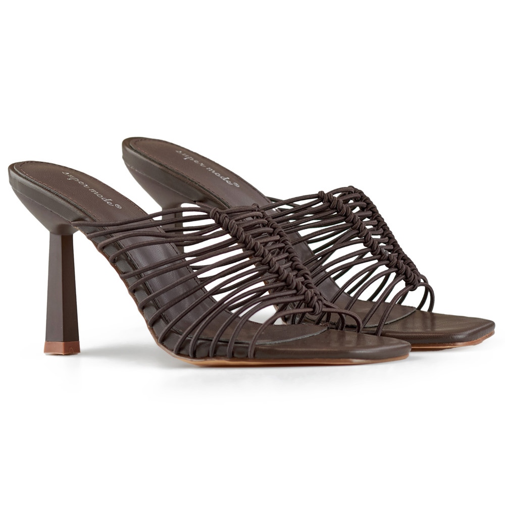 Detalhes: Chinelos de salto alto, chinelos femininos elegantes e flexíveis com salto alto marrom