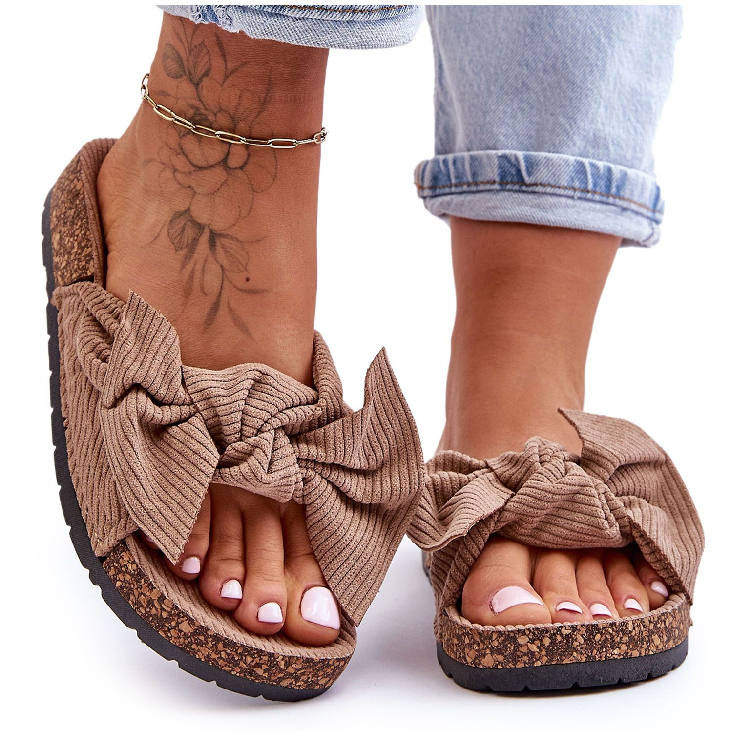 Inna marka Chinelos de veludo cotelê bege escuro verão