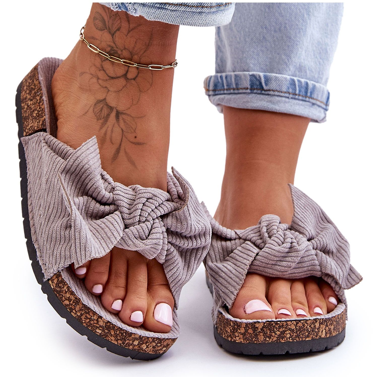 Detalhes: Chinelos de veludo cotelê cinza verão