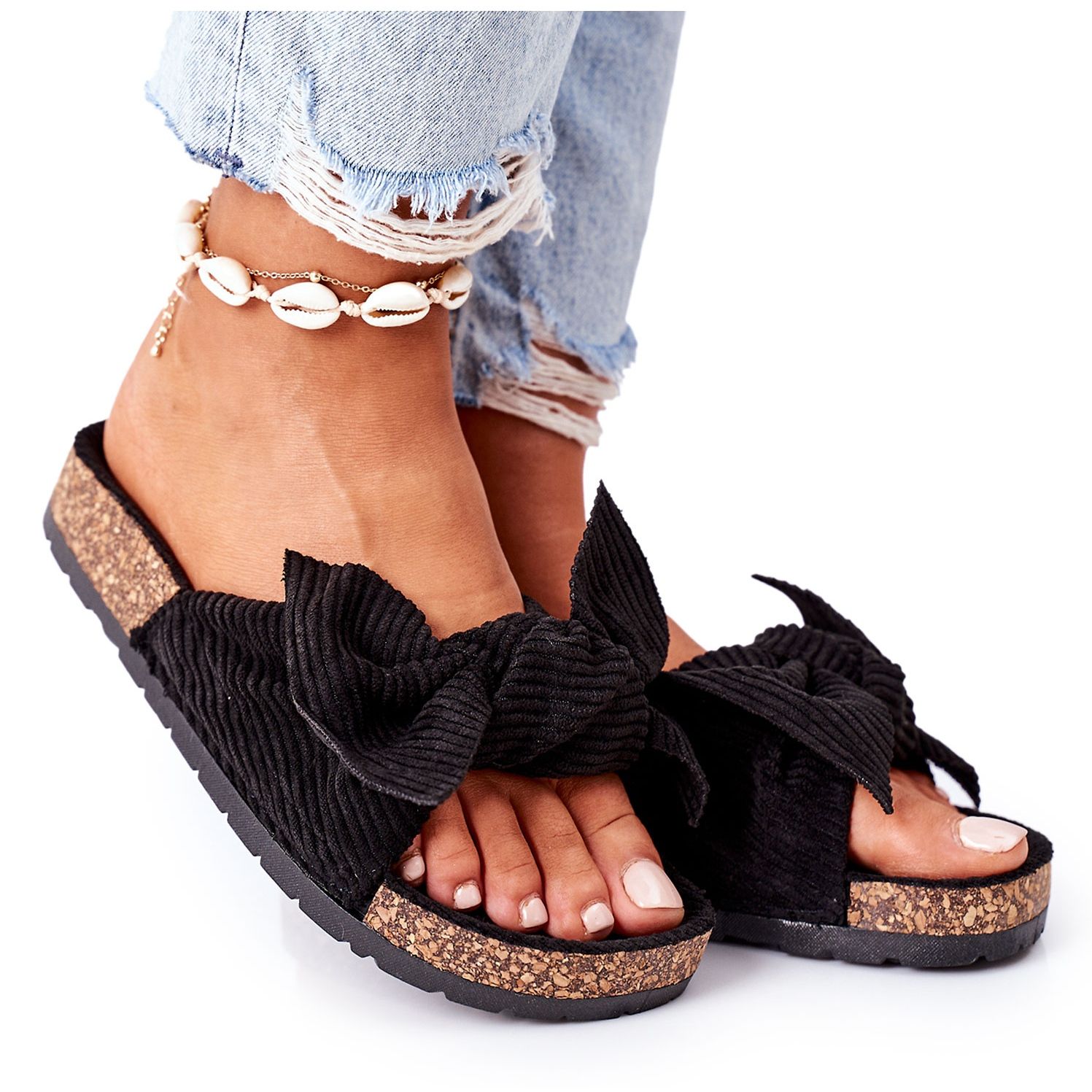 Detalhes: PS1 Chinelos de veludo cotelê em cortiça preta de verão preto