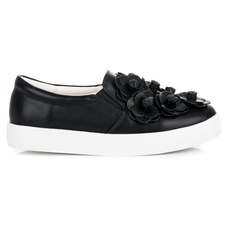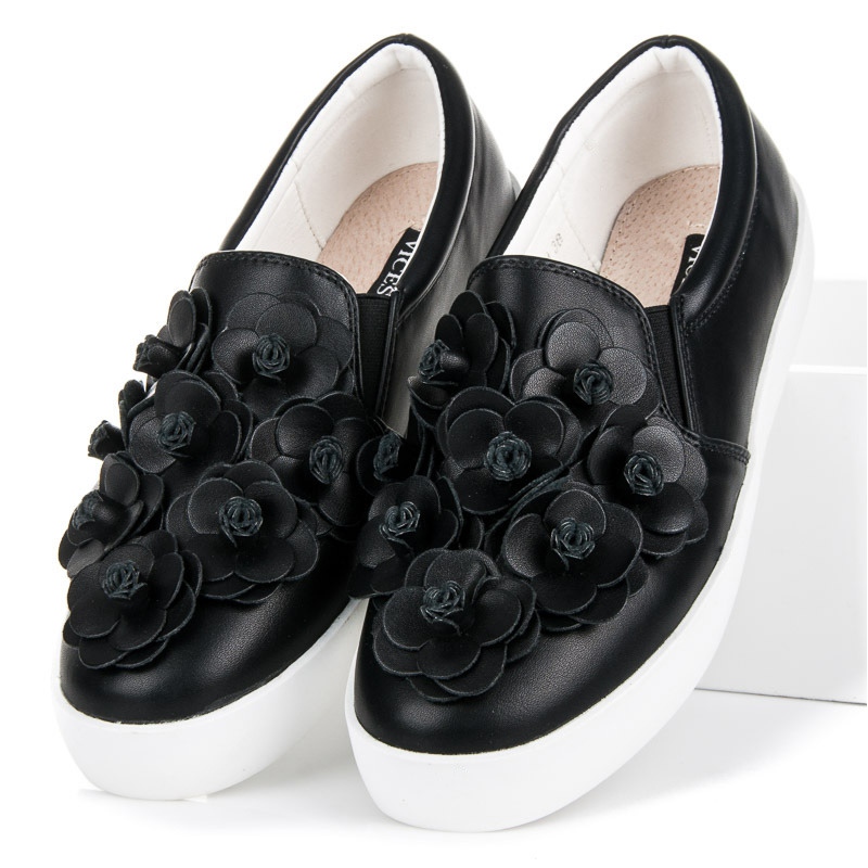 Descubra elegância e conforto únicos com os slip-ons Vices pretos, que certamente se tornarão um elemento indispensável do seu guarda-roupa. Estes sapatos atraentes combinam perfeitamente com uma variedade de estilos, tanto do dia a dia quanto mais elegantes. As suas delicadas decorações em forma de pequenas flores originais conferem-lhes um charme subtil, distinguindo-as dos outros modelos.