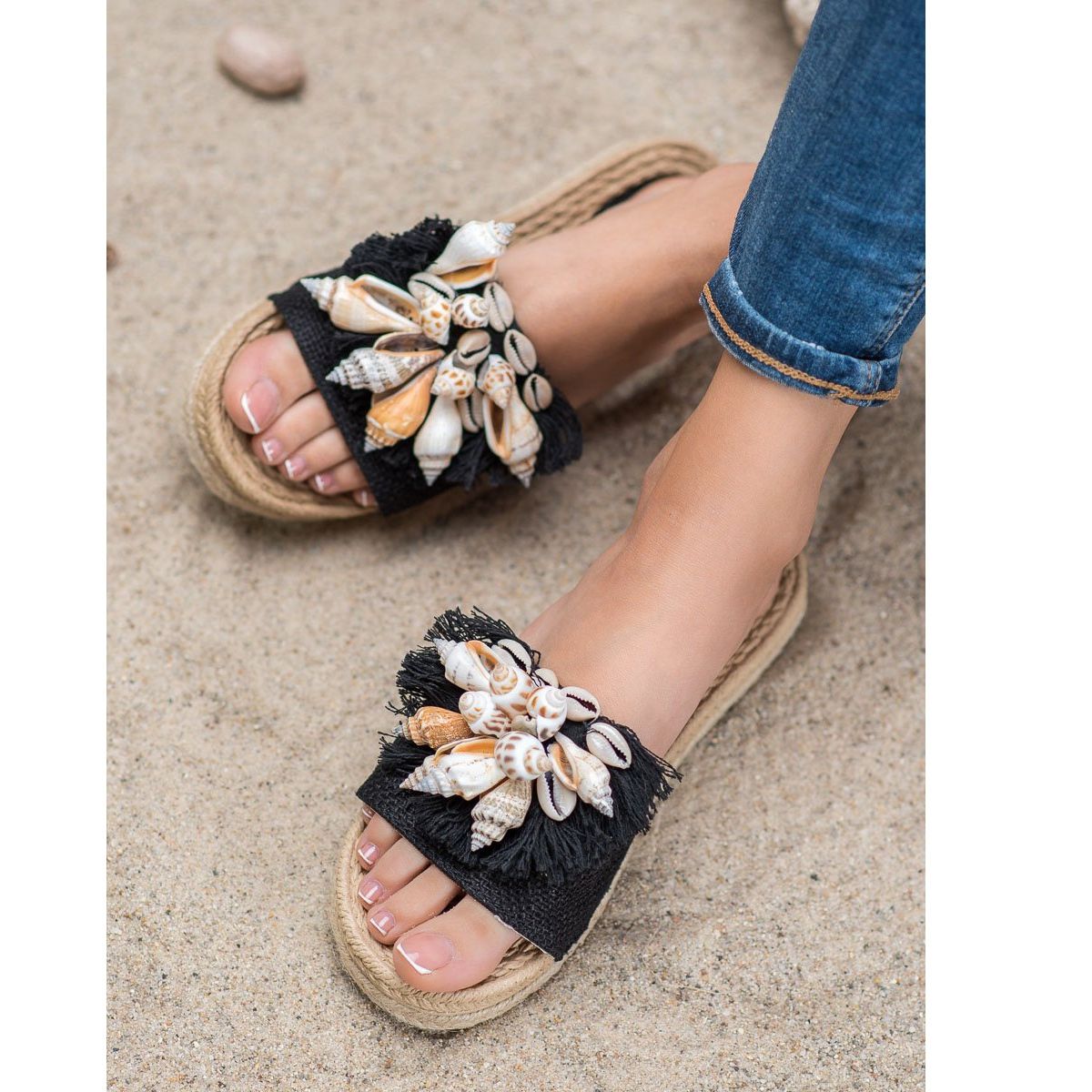 Detalhes: Seastar Chinelos elegantes com conchas preto