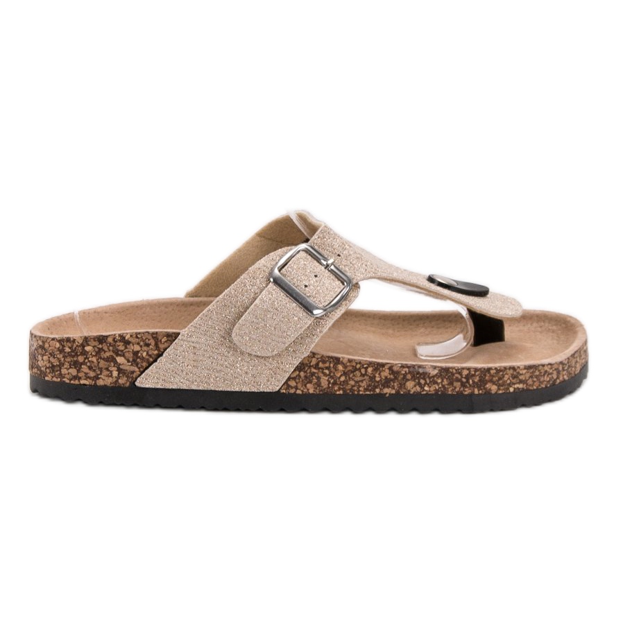 Os chinelos Brown Evento são a escolha perfeita para todos os dias, tanto para um passeio na praia como para as compras de verão. A sola com banda de rodagem, confeccionada em plástico, garante aderência adequada, e o acabamento em tecido da palmilha garante maciez e conforto de uso. A categoria KeeShoes introduz um toque de luxo ao estilo do dia a dia, e o padrão glitter adiciona um brilho sutil.