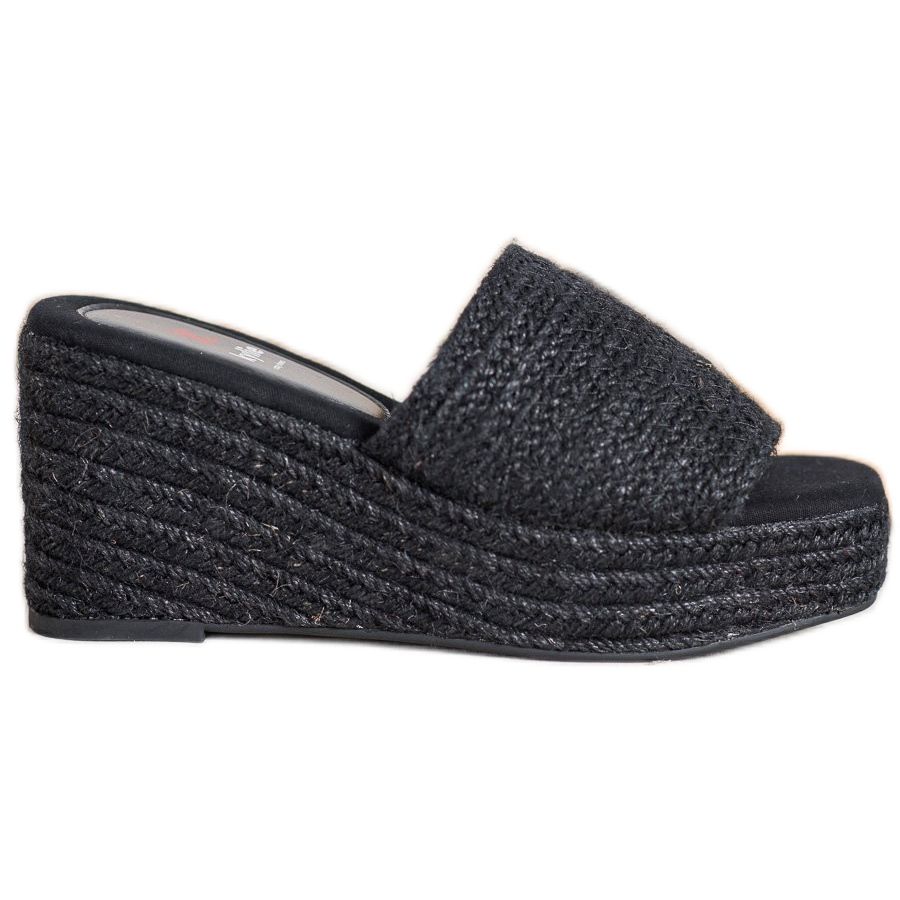Descubra estilo e conforto únicos com as sandálias de cunha da Kylie! Estes elegantes chinelos pretos são a escolha perfeita para mulheres que valorizam um look casual e ao mesmo tempo querem adicionar um pouco de altura. Feitos inteiramente de material têxtil de alta qualidade, eles não são apenas um toque moderno, mas também confortáveis de usar o dia todo.