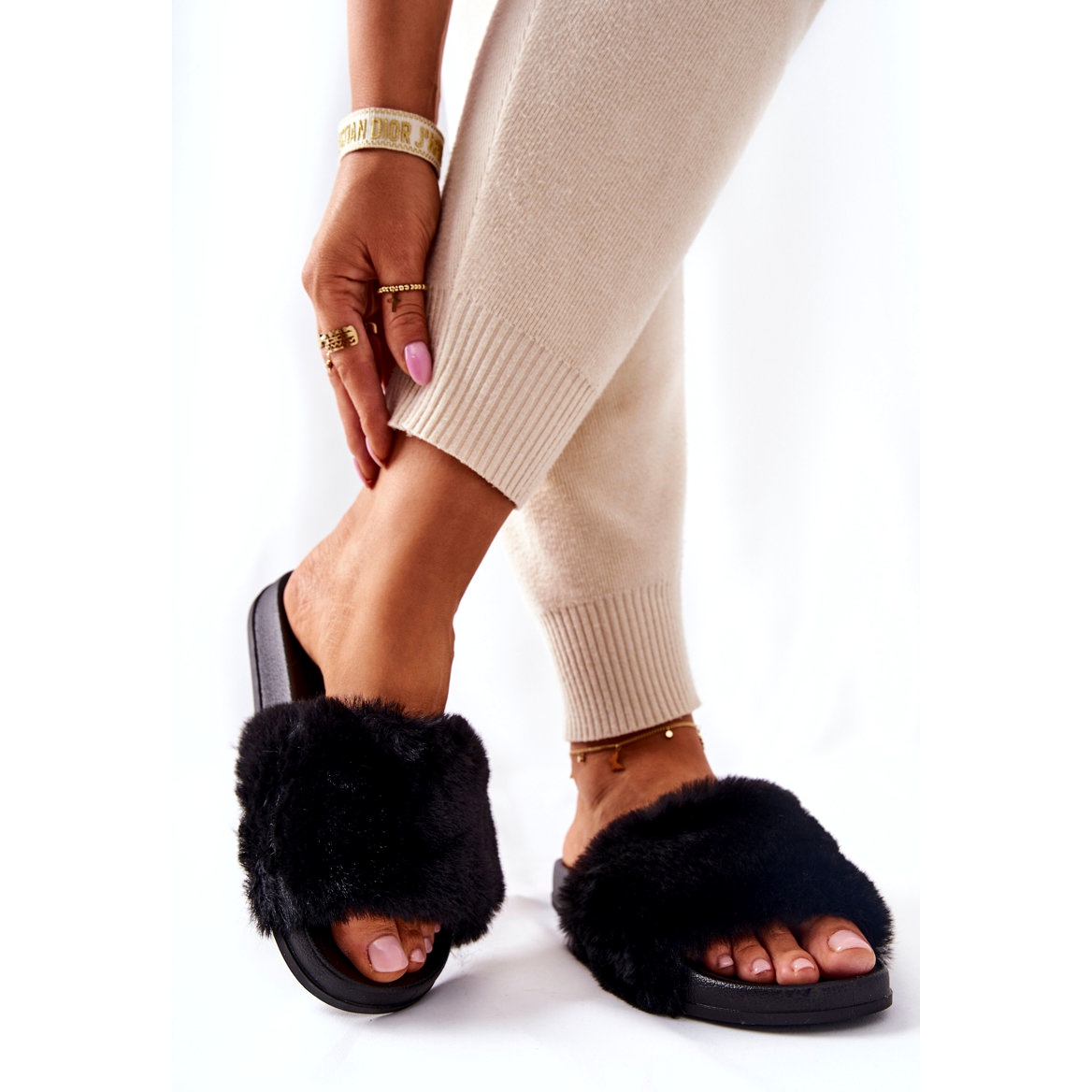 A palmilha contornada garante ajuste e suporte perfeitos ao pé, tornando estes chinelos perfeitos para uso o dia todo. A pele muito popular não só acrescenta charme, mas também proporciona uma agradável sensação de estar embrulhado. Os chinelos estão disponíveis em várias cores, o que permite escolher o par perfeito para cada mulher.