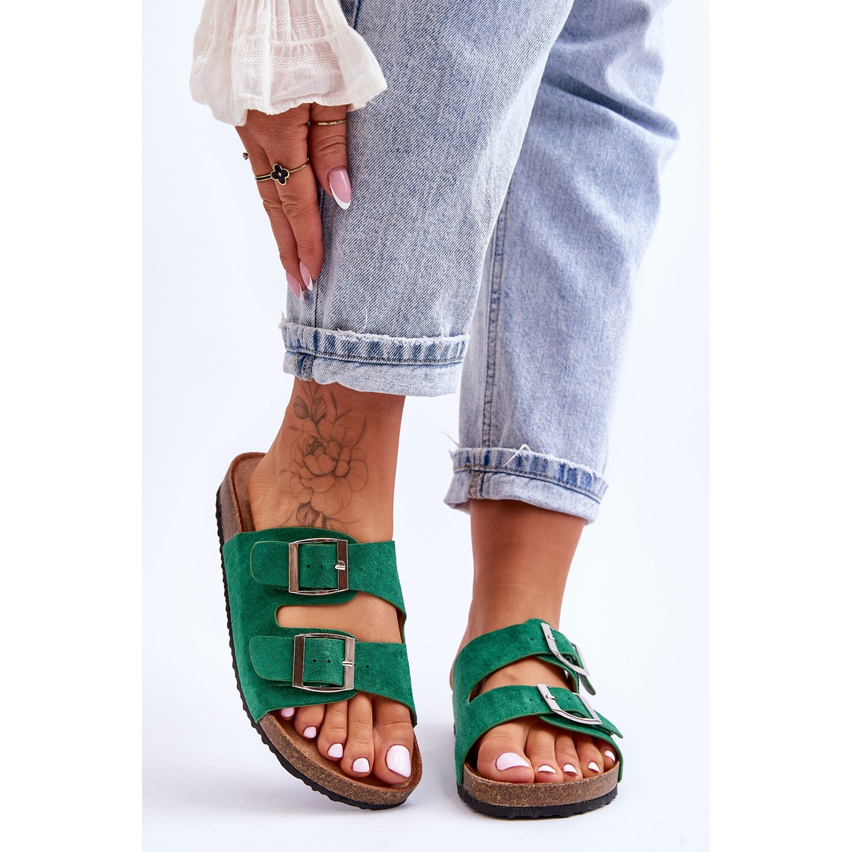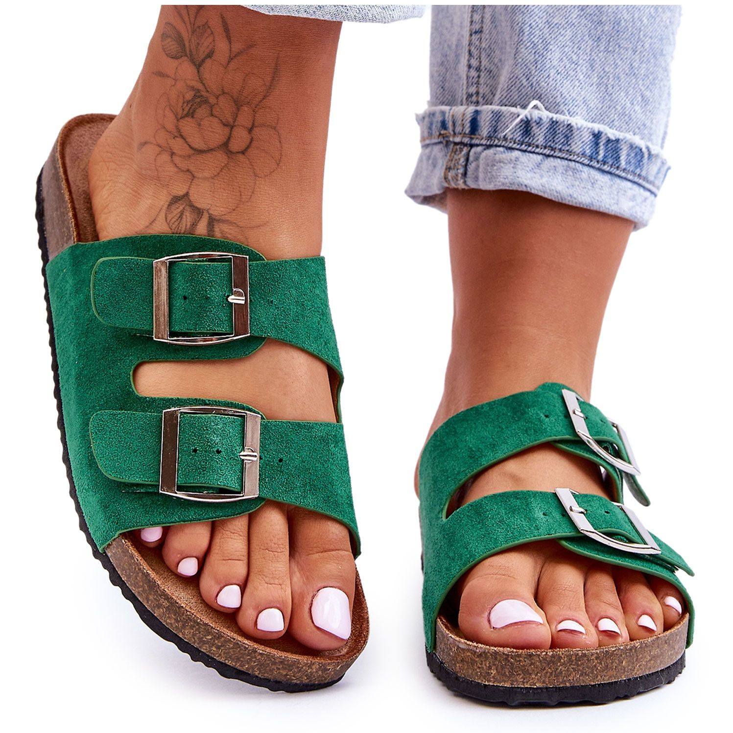 Estes chinelos femininos são confeccionados em camurça ecológica de alta qualidade, agradável ao toque e agradável à vista. O elegante tom verde combinado com o bege neutro cria um visual universal que combina com uma variedade de estilos de verão. Uma vantagem adicional são as fivelas decorativas com alças ajustáveis, que não só embelezam o calçado, mas também permitem um ajuste perfeito ao pé.